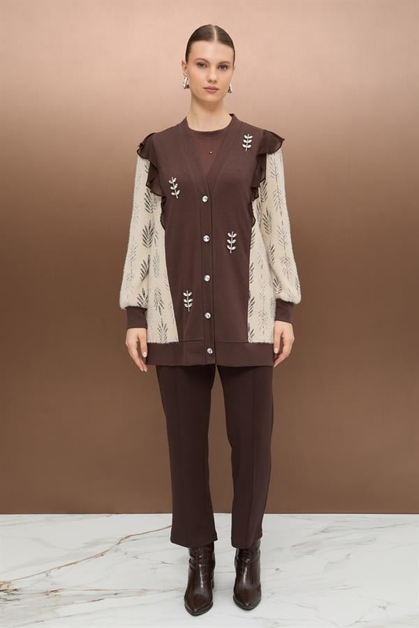 Anka Hırka Kesim: Tam Kalıp Tarz: Klasik Şık Boy: 85 Cm Şifon Volanlı, Yapıştırma Taş Süslemeli, Ön Bedeni Düğme Kapamalı Hırka