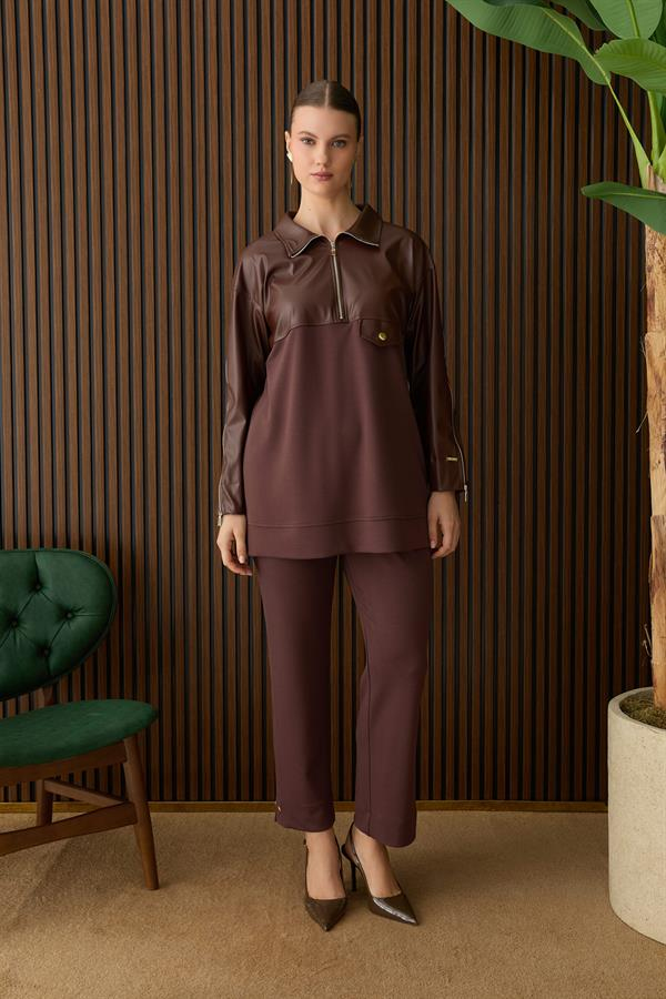 Canay Takım Kesim: Rahat Kalıp Tarz: Spor Boy: Üst: 80 Cm Toplam: 96 Cm Dik Yakası Fermuar Kapamalı Süs Kapaklı Beli Lastikli Pantolonlu Takım